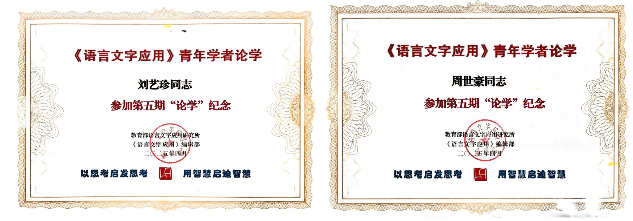 二人麻将学生刘艺珍、周世豪受邀参加《语言文字应用》第五期青年学者论学