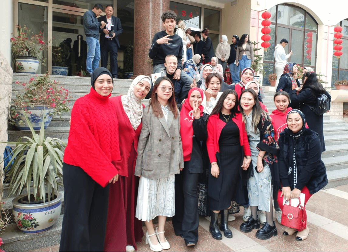 国教院的培养,让我做好了成为中文教师的准备。研二我顺利通过了语言合作交流中心的国际中文教师志愿者选拔,赴埃及开罗文化中心任教。在埃期间,和民大国教院的故事仍在继续。23年11月,周铁海书记来开罗参加语合中心举办的留学展,还来到了我所在的开罗中国文化中心参观,他是我在埃及见到的第一位民大人,他乡见故人的喜悦缓解了我初到埃及的思乡之情。我们22级研二期间在海外的学子有29人,有中文志愿者,也有套读第二学位的同学。天南海北的我们经常联系,一次次交流中,我们仿佛共历了各自去过的远方。研三我再次出发,赴英国班戈大学孔子二人麻将